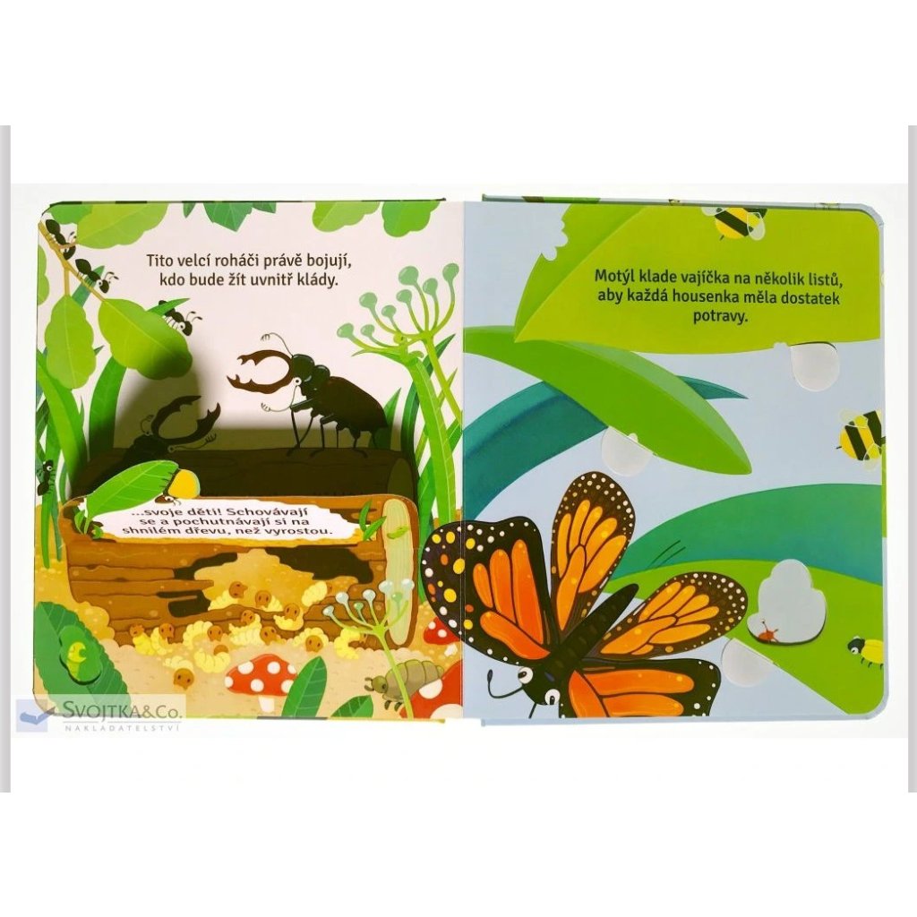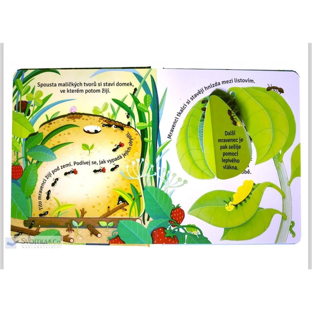 Odklop okénka na stránkách této knihy a objevuj a prozkoumej rozmanité domovy a obydlí pavouků, hlemýžďů a mravenců!
