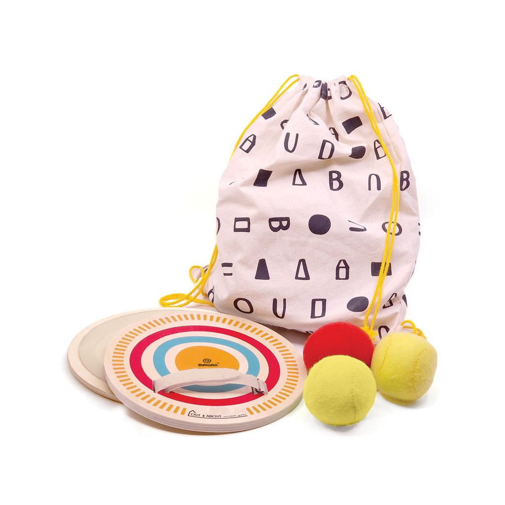 Tato sada obsahuje dvě dřevěné pálky s ergonomickými rukojeťmi a povrchem na suchý zip pro bezpečné chytání, spolu se třemi barevnými látkovými míčky pro nekonečnou zábavu při házení a chytání.