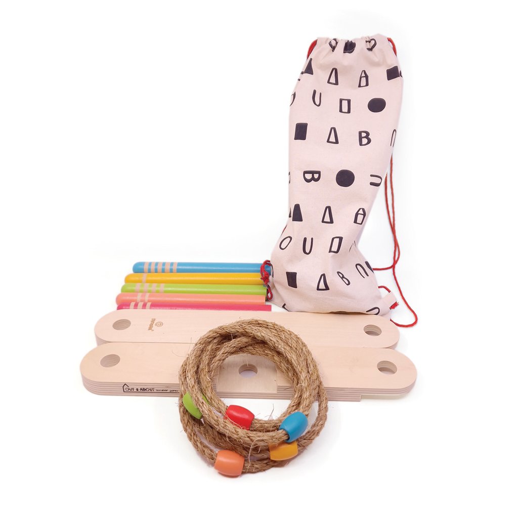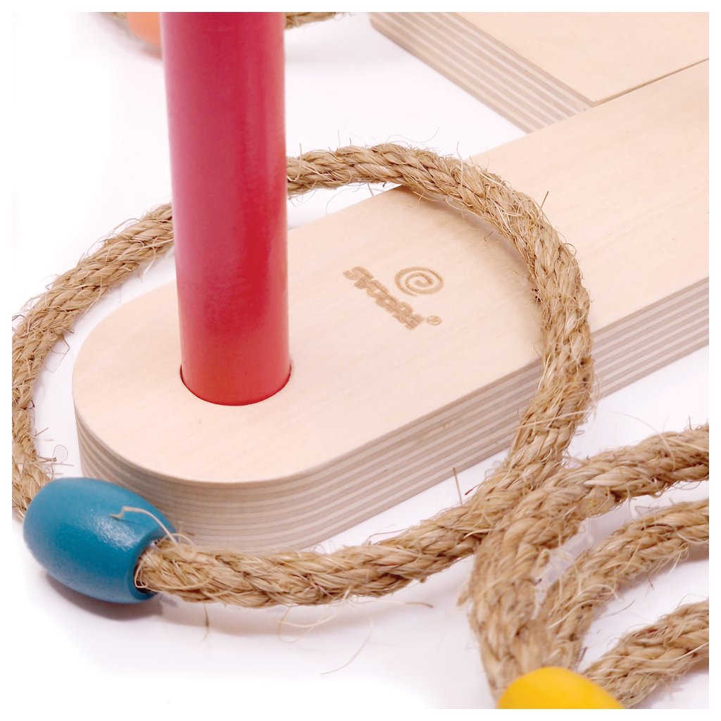 Tato hra, která obsahuje šest barevných látkových kroužků a pevnou dřevěnou základnu s terči, je vyrobena z vysoce kvalitní překližky a čajového dřeva.