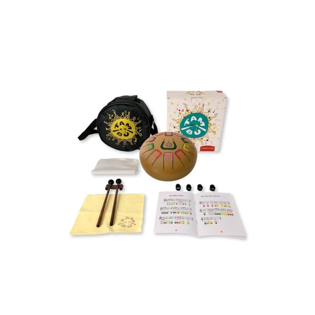 TAMBÚ je krásný kovový bubínek s melodickým zvukem, který si zamilují začátečníci i pokročilí hráči. Je ideální volbou pro děti i dospělé a nabízí radostné chvíle každému, kdo touží proniknout do světa hudby.