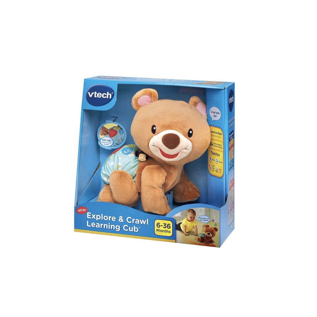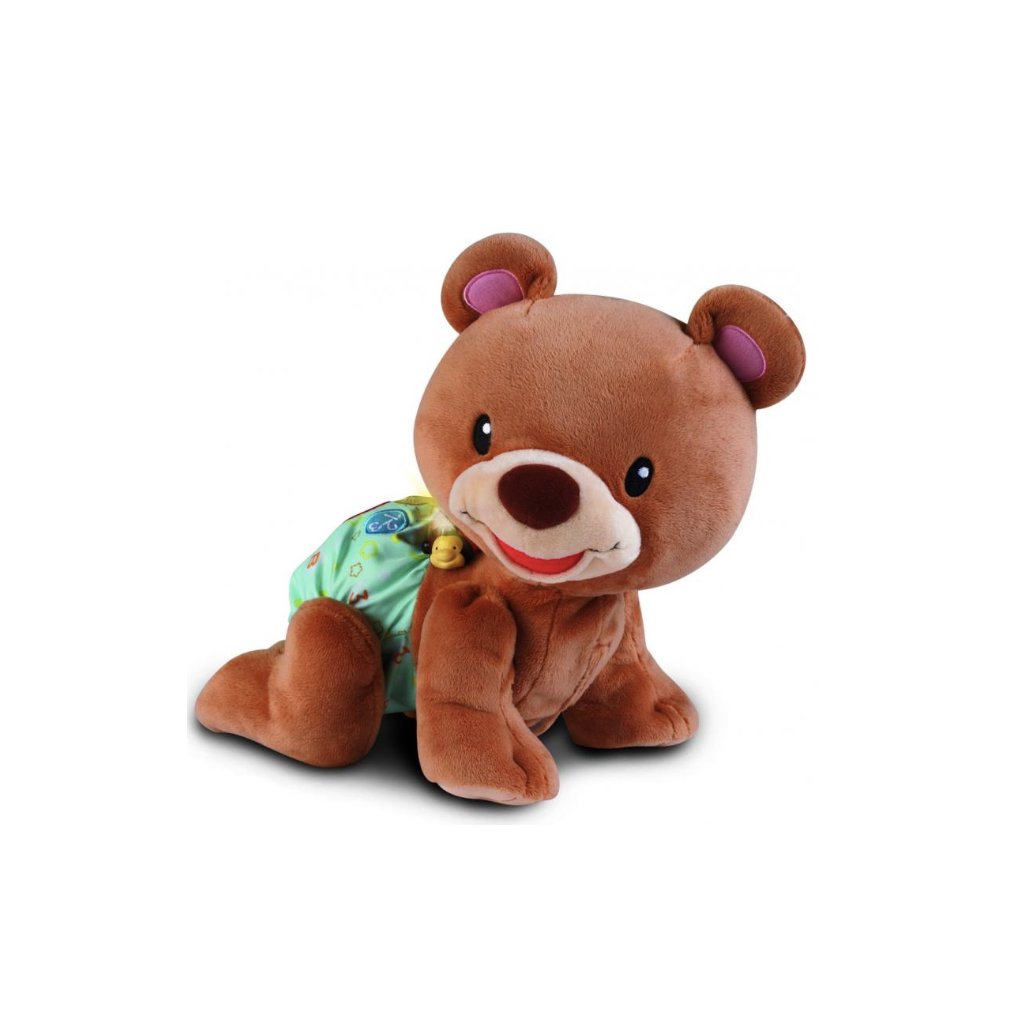 Rozkošný zvídavý medvídek povzbuzuje batolata i menší děti k pohybu a hře na podlaze. Po stisknutí srdíčka na zádech plyšáka, říká medvídek roztomilá slova a fráze a přitom pomalu leze. Medvídek učí poznávat barvy, tvary a hraje písničky. Zazpívá 5 písniček a zná přes 50 slov a frází.